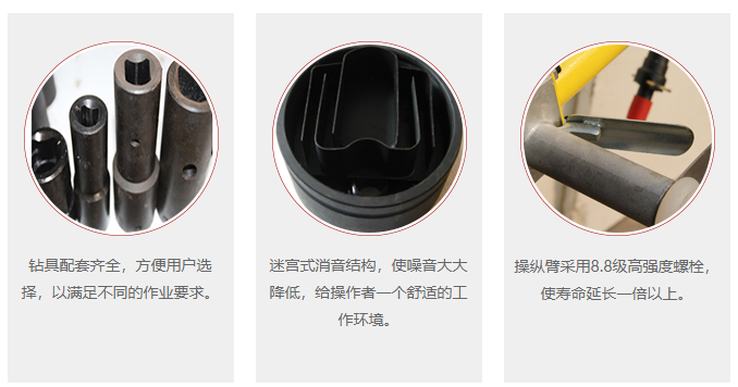 整機(jī)改進(jìn)設(shè)計(jì)后,較傳統(tǒng)機(jī)型,重量減輕了25%,頂力變大了20%,馬達(dá)功率提高了10%,綜合打孔速度顯著提升。